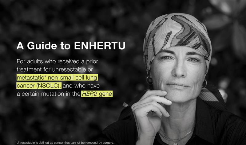 - Non-small cell lung cancer (NSCLC) that has a certain mutation in the HER2 gene and cannot be removed by surgery or has spread to other parts of your body (metastatic), and who have received a prior treatment. Your healthcare provider will perform a test to make sure ENHERTU is right for you.